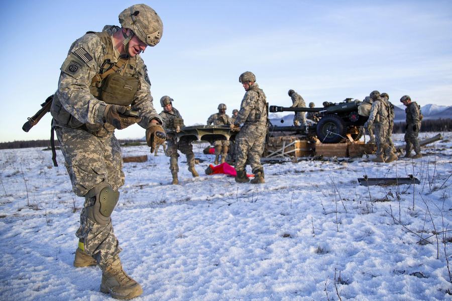 美国陆军空降兵在美国空军C17运输机的配合下,在阿拉斯加进行了雪地空投演习。