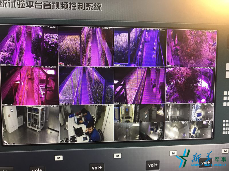 工作人员通过密闭生态循环系统试验平台音视频控制系统保障志愿者们舱内的工作与生活。 新华社记者 王瑶 摄
