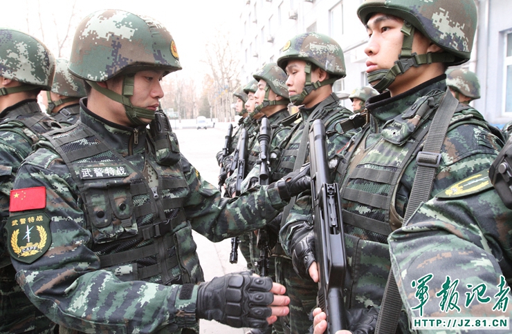全身武装的特战队员在目标周边巡逻。郑光傲摄