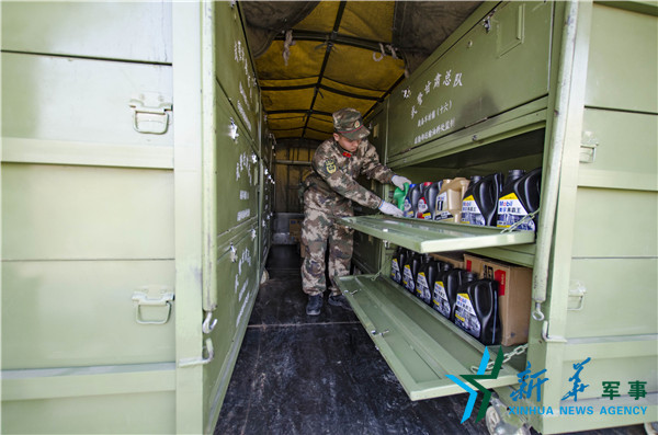车材车内设携行箱2组18个,可携带多种车型的附属油料和常用零部件,为遂行任务部队车辆提供保障。