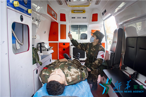 武警野战医疗救护车配备心电监护、呼吸机、吸痰器、吸氧器,可对拉练途中患病官兵及时进行医疗处置。