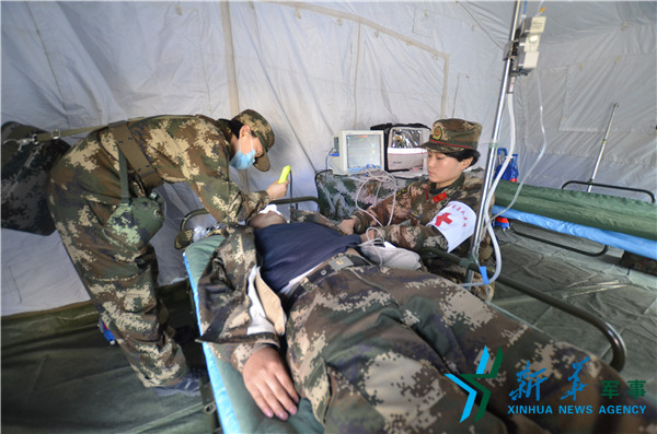 野战医疗帐篷可进行B超、心电图、血液、尿液检查,同时还可对危重病人进行抢救、手术和治疗。
