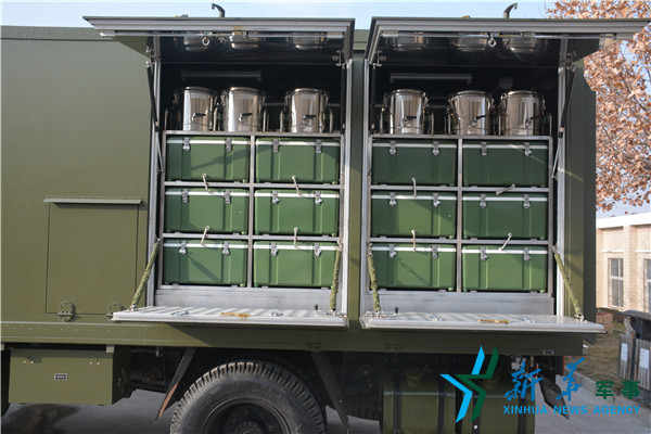 自行式炊事车内配各类灶台、洗物池、橱柜及相关附属设备,可提供每小时150人份四菜一汤主副食供应。