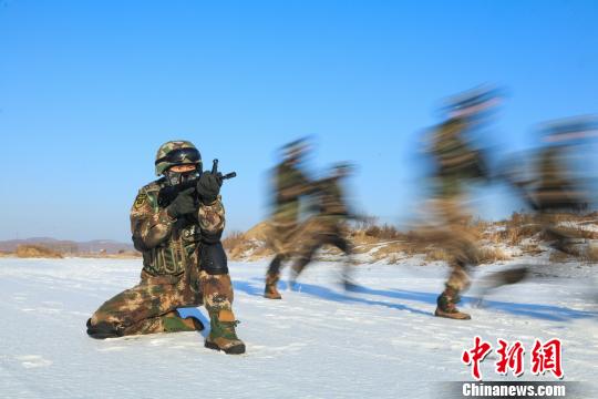 黑龙江:“95后”边防新兵严寒中开展野外战术训练