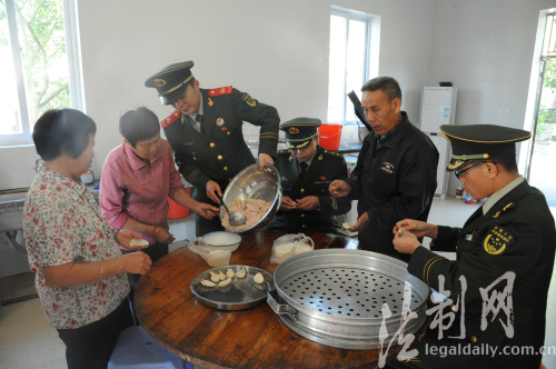 广东中山边防官兵与孤岛老人包饺子过冬至