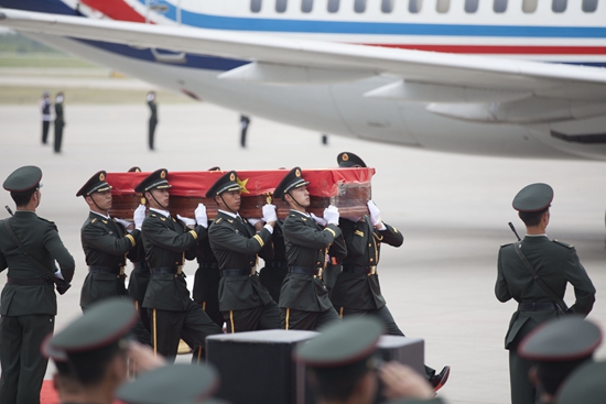 中国军队派出军机,将申亮亮的遗体运回了祖国。飞机落地那天,正好是中国传统的端午节。29岁的申亮亮还没有结婚,父亲母亲都是河南地地道道的农民。当地武装部派人通知申亮亮家人的时候,他的父亲正在地里干活儿,哥哥还在外地打工。