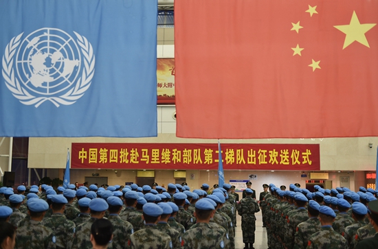 5月25日,陆军第16集团军在长春龙嘉国际机场隆重举行仪式,欢送中国第四批赴马里维和部队第二梯队启程。杨再新/摄