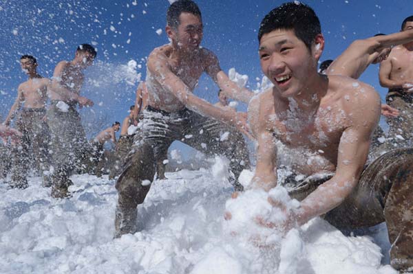 不断往身上涂雪:他们的耐寒训练也是拼了