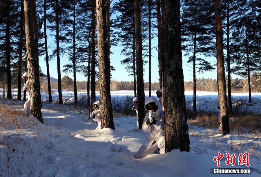武警大兴安岭边防部队高寒雪原训练雪地伪装术