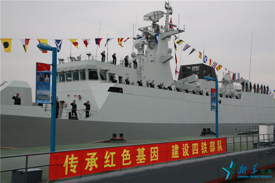 2016年12月28日,海军宁德舰加入人民海军战斗序列。图为宁德舰官兵。周道先 摄