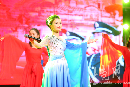 图为官兵家属表演的歌曲独唱《妻子》,用真情的歌声感动了在场的所有观众 王家伟摄