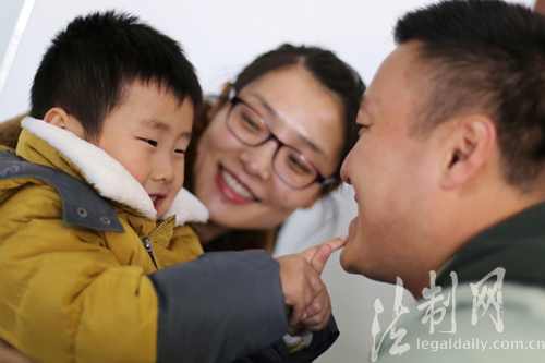 在边检站指挥中心工作的杨正因工作需要,经常值班,回家次数较少,加上个人喜欢运动,经常健身并开展长跑锻炼,一直是儿子杨文博眼中的偶像。今年元旦恰好又是杨正值班,儿子听说后一直缠着妈妈要到部队找爸爸。到了部队看到爸爸后,小文博开心地不得了,对爸爸又是亲又是疼,还不停地和妈妈说:“妈妈,爸爸这里真好玩,以后我们经常来爸爸这里玩好吧?”(郑永波)