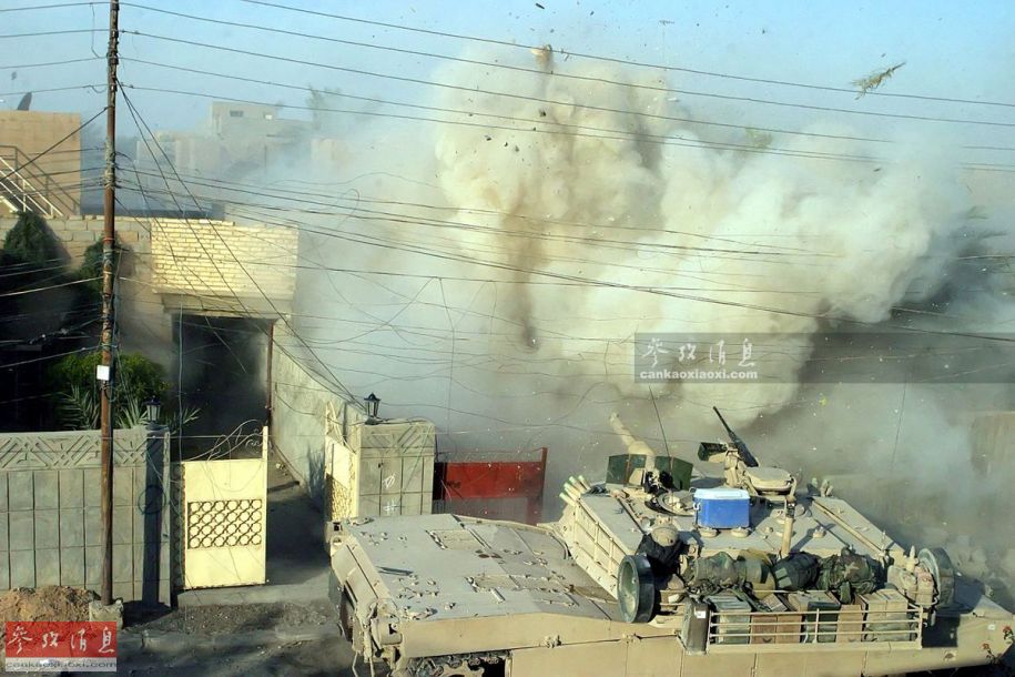 根据美军实战统计,以每辆M1A2坦克携带40枚120毫米炮弹计算,通常在激战2小时内就能全部打光。除M1028反人员霰弹外,美军还需要一种多用途榴弹,可以应对上至坦克,下至砖墙或土制堡垒等不同类型目标。图为2004年费卢杰之战中,美陆战队M1A1坦克开火击毁目标瞬间。
