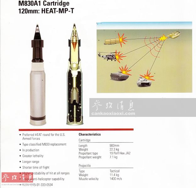 据外媒报道,美军M1A2坦克曾在2003年伊拉克战争期间,使用M830A1榴弹击毁过伊军T-72坦克。M830A1多用途榴弹官方宣传资料。