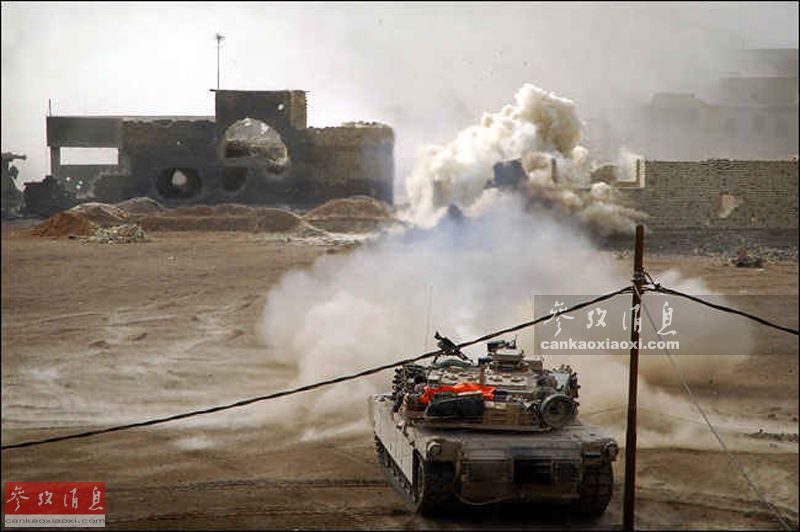 图为2004年,费卢杰之战期间,美军M1坦克使用120毫米主炮摧毁反美武装的据点。