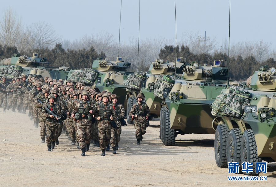 陆军某部“大功三连”在野外组织全员全装紧急出动演练,锤炼部队实战能力(2016年12月30日摄)。新华社记者 张永进 摄