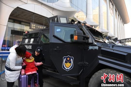 旅客近距离感受防暴装甲车。杨艳敏 摄