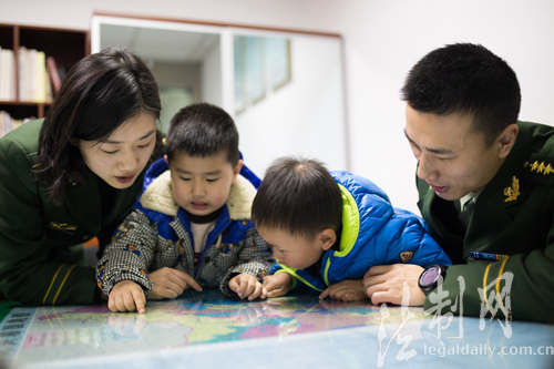 1月23日,江苏无锡边防检查站部分官兵子女来到警营提前和父母团圆共度春节。