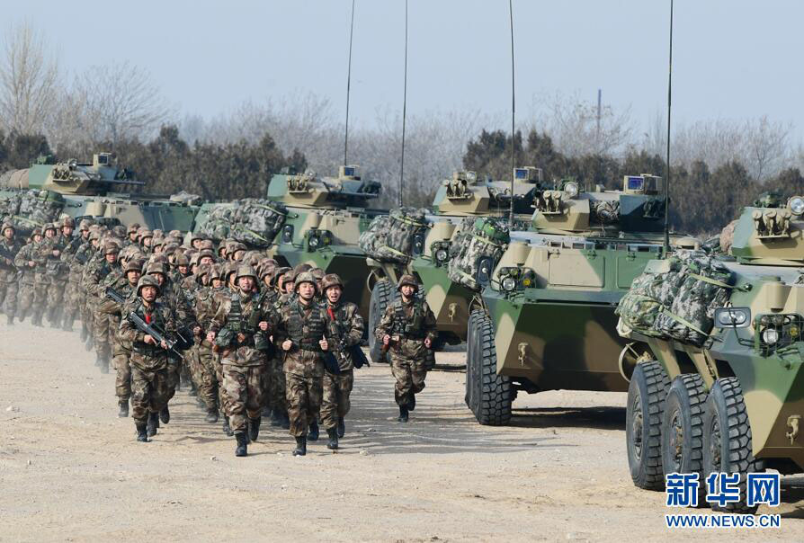 陆军某部“大功三连”在野外组织全员全装紧急出动演练,锤炼部队实战能力(2016年12月30日摄)。新华社记者 张永进 摄