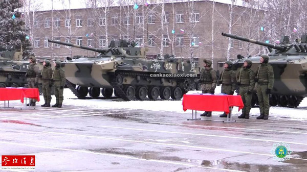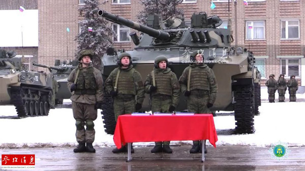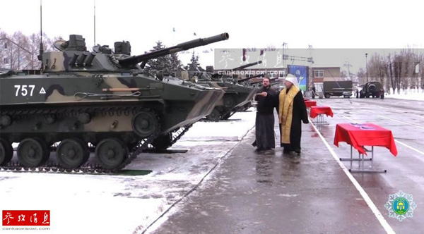 近日,驻扎俄罗斯西部城市梁赞的俄罗斯空降兵近卫第106空降师近卫第137空降团列装了第2个营的新型BMD-4M伞兵战斗车并为此举行了举行庄严洗礼仪式。图为东正教神父举行洗礼仪式。