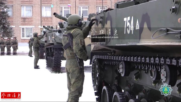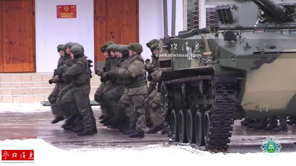 据俄罗斯军事装备网站对该型战车的介绍,BMD-4M伞兵战斗车战斗全重为13.5吨,车体长6.1米,宽3.11米,高2.45米。图为俄空降部队官兵列队穿越一辆BMD-4M伞兵战斗车。