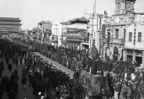 1949年1月31日,正月初三,中国人民解放军第四野战军(简称四野)十三兵团所属第四十一军,奉命首批从西直门、德胜门、复兴门入城接管北平防务,北平和平解放。