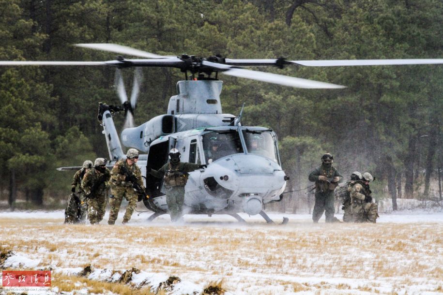 2017年1月10日,美国新泽西州国民警卫队与美国海军陆战队的UN-1Y直升机开展兵种联合训练。