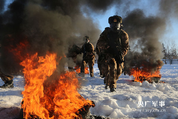 可可托海边防连官兵冬日练兵,模拟穿过染毒地带