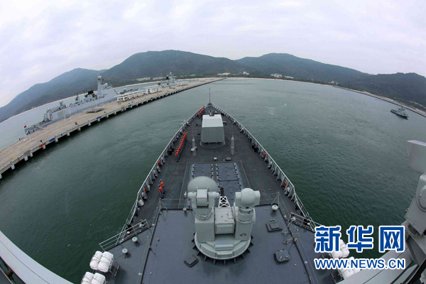 新华社海南三亚2月10日电(曾涛、周启青)10日下午,由海军南海舰队导弹驱逐舰长沙舰、海口舰和综合补给舰骆马湖舰组成的远海训练编队驶离三亚某军港。随后,他们将在南海某海域与航空兵等部队展开联合演练,拉开这次远海训练的序幕。