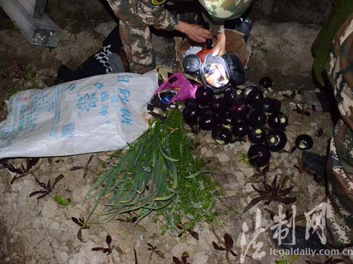 图为边防官兵在车内查获的部分生活用品