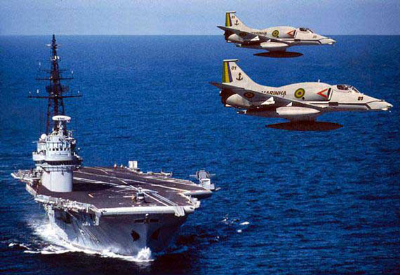 资料图:巴西海军“圣保罗”号航母和A-4“天鹰”飞机。