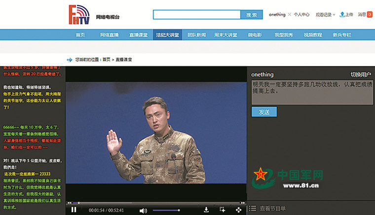 “战士们还可通过‘送鲜花’‘扔鸡蛋’等方式,对网络授课进行‘点赞’或‘吐槽’。”在该团信息控制中心,与记者一同观摩网络授课的团宣传股股长韩小虎,点击鼠标打开留言窗口,输入评论后轻敲键盘,一条“弹幕”随即浮现在屏幕上。