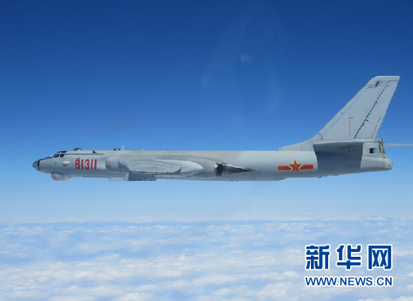 3月2日,在西太平洋某海域,一架中国海军航空兵轰炸机参加舰机实兵对抗演练。当日,中国海军航空兵轰炸机、歼击机、警戒机等多型多架飞机,经宫古海峡赴西太平洋某海域,与航经这一海域的海军远海训练舰艇编队进行了实兵对抗演练。新华社发(陈小勇摄)