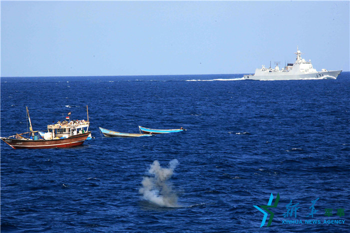 中国海军海口舰在亚丁湾、索马里海域执行首批护航任务。(资料图)