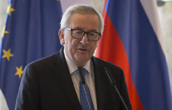 2017年3月2日,欧盟委员会主席让-克洛德·容克在斯洛文尼亚举行的新闻发布会上发言。(新华/美联)
