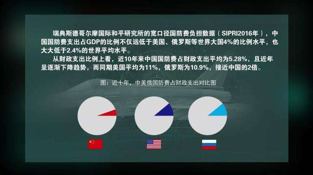 ↑海军学术研究所研究员张军社:国防费投入主要受国家安全威胁程度、国家安全和利益发展的要求、国家军事战略和国民经济状况等因素的影响。如何处理好“大炮”与“黄油”之间的关系,是各国政府普遍面临的难题,军费负担过重,不利于国民经济健康发展;国防费水平过低,则不利于国防建设,国家安全和发展利益无法得到有效保障。