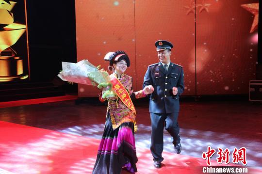 颁奖典礼现场,彝族军嫂莫小梅和丈夫沙子呷跳起了彝族舞蹈。张佳璐 摄