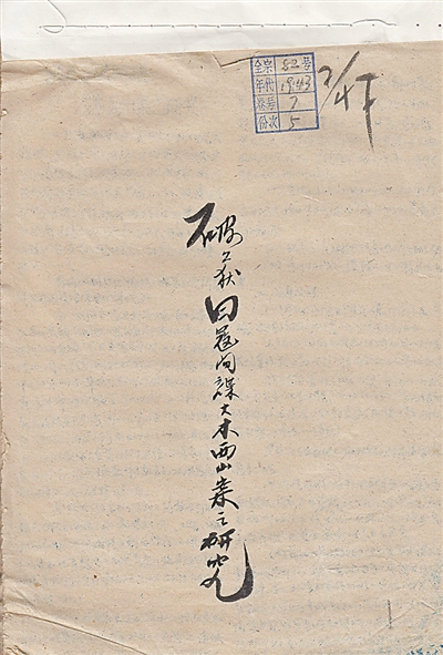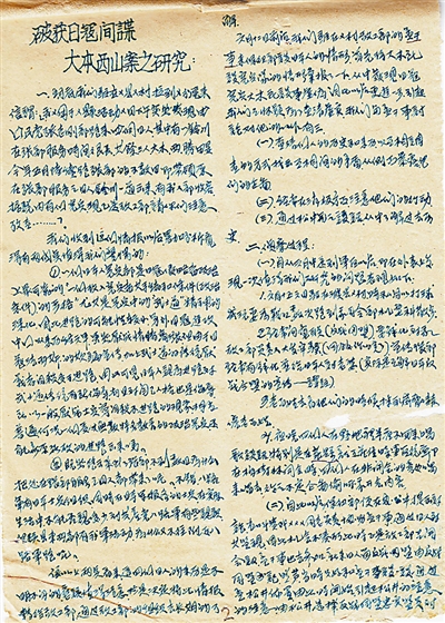 《破获日寇间谍大木西山案之研究》第二页。资料照片