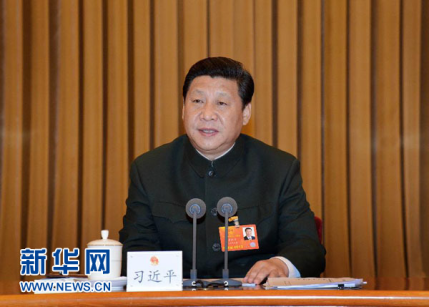 2013年3月11日,中共中央总书记、中共中央军委主席习近平出席十二届全国人大一次会议解放军代表团全体会议并发表重要讲话。新华社记者李刚摄
