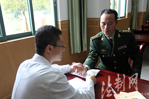图为该支队政治处主任刘家顺亲自带头向专家寻诊