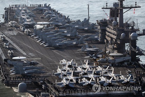 “卡尔·文森”号航母(图片来源:韩联社)