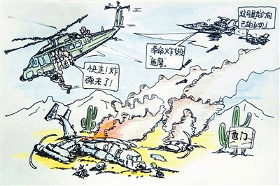 “鱼鹰”惨死沙场,又被自家导弹炸得粉身碎骨以免落入敌手。吴志峰绘