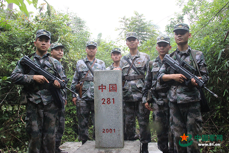 官兵巡逻至281号界碑合影。王永青 摄
