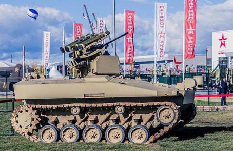 卡拉什尼科夫公司去年发布的首款无人战车——BAS-01G“战友”无人坦克(英国《每日邮报》网站)