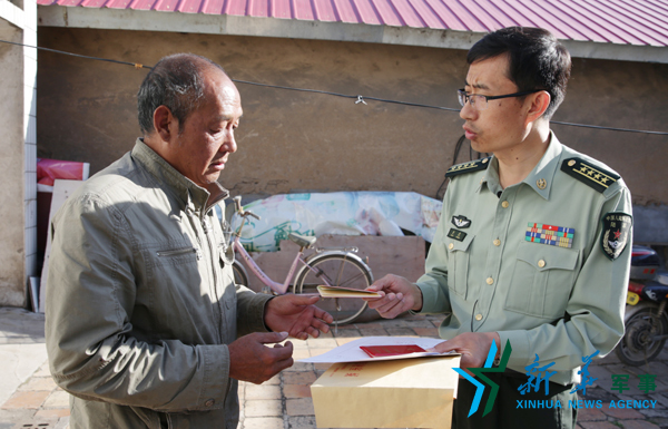 全忠到山西长治将残疾证交给退伍战士王帅的父亲。权东 摄