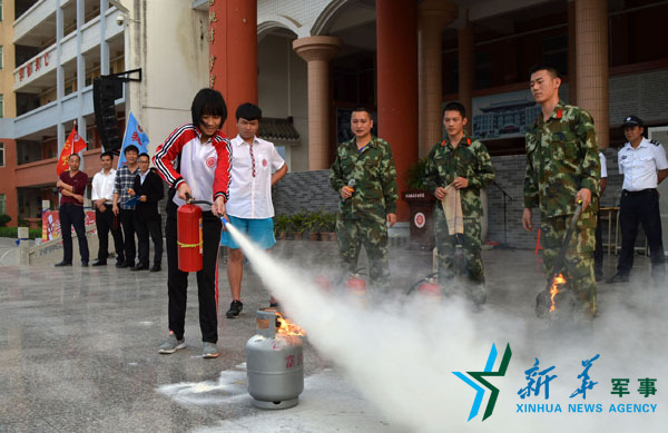 学生亲身体验灭火