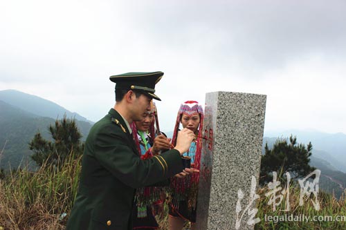 广西峒中边防派出所官兵与瑶胞携手维护界碑形象