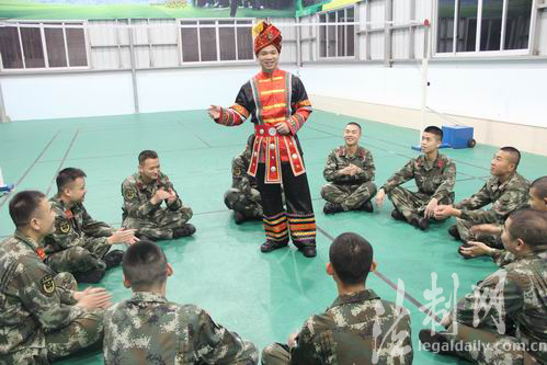 图为壮族官兵正在唱壮族山歌