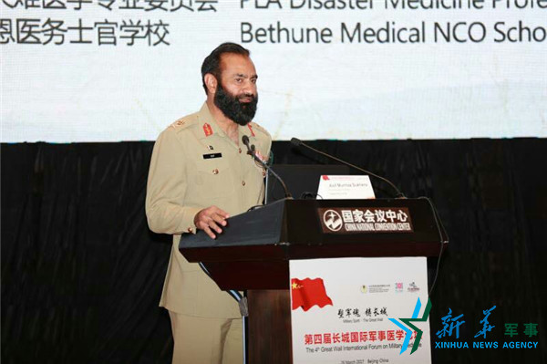 巴基斯坦陆军卫生部部长苏克拉在论坛上致辞。(图片由解放军总医院提供)