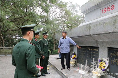 图为“老支书”带领官兵瞻仰人民英雄纪念碑